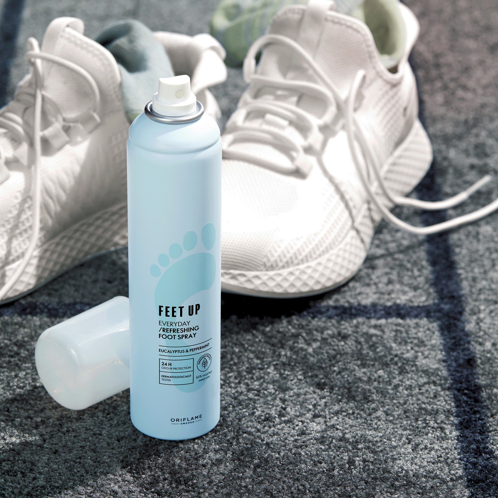 Breathe new life into tired feet whenever you need to with this instant cooling spray. Enhanced with natural eucalyptus and peppermint oils, it leaves your feet odour-free and perfectly refreshed for 24 hours. Dermatologically tested and paraben free.